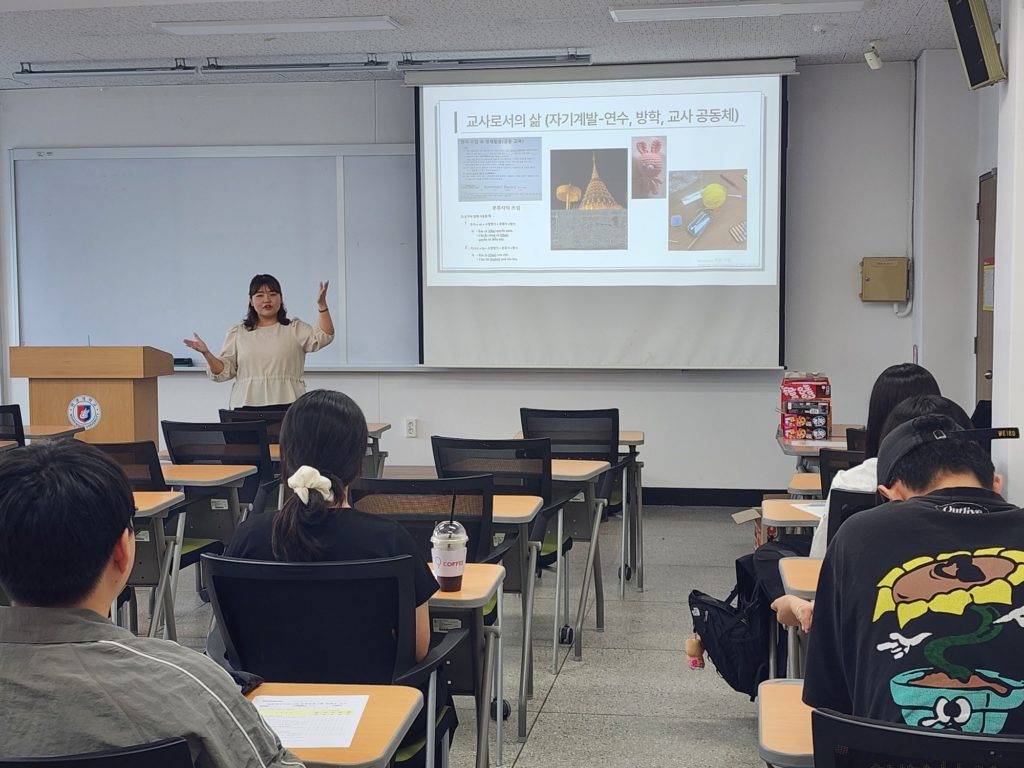 영어교육과 졸업생 강지숙 선생님(진도 국악고등학교 영어교사)이 후배들을 위해 특별한 시간을 마련했습니다! 진로 고민부터 임용시험 꿀팁까지 아낌없이 공유한 선배님의 열정적인 특강! 💡 영어교육과 후배들의 꿈을 응원하는 따뜻한 선배님의 이야기를 함께 들어보세요! 💕